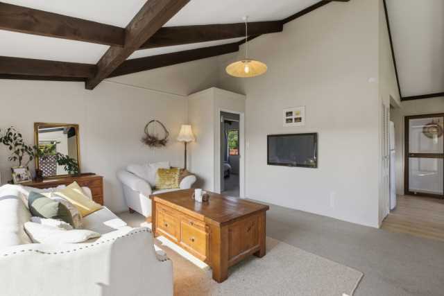 The large cathedral ceilings, together with generous double bedrooms, built in wardrobes, and separate laundry create a sense of space around the open plan north facing living layout, all without compromising on warmth. The main dwelling has a large heat pump, heat lamp in the bathroom for relaxing baths, and panel heater in the second bedroom, making heating cost-effective and effortless.
