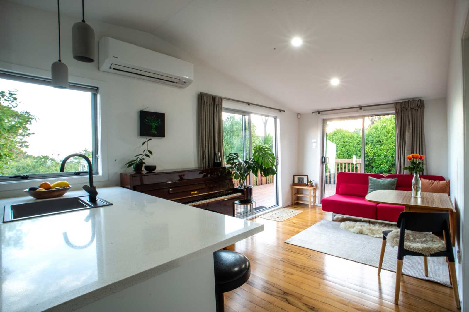 Fully renovated throughout with modern open-plan kitchen, new bathroom, insulation, double glazing, heat pump and stunning timber floors, it offers easy single-level living.